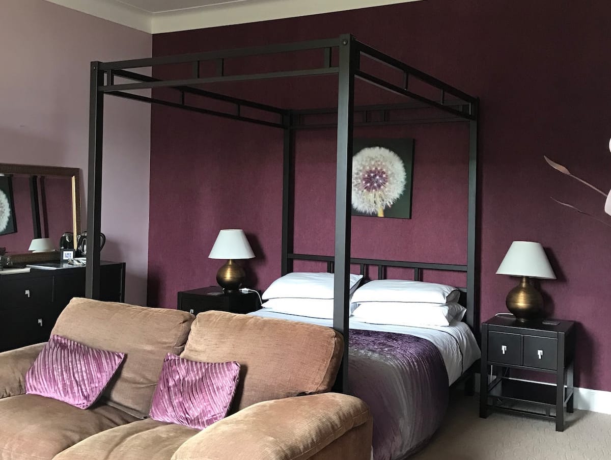 Bedroom 1 boasts a comfortable king sized four poster bed as well as a wood burning stove stocked with firewood for cosy evenings. It enjoys fabulous views of Ben Nevis and the surounding mountains as well as of Loch Linnhe. This room has a stunning ensuite with twin sinks and a large roll top bath from which you can enjoy the view over to Ardgour.